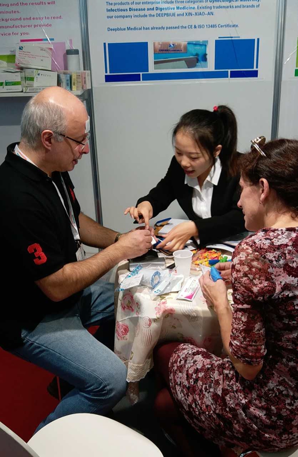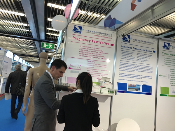 ??2018年11月12日至15日,2018年德國杜塞爾多夫國際醫(yī)療器械及設(shè)備展覽會(MEDICA2018)順利舉行,來自世界76個國家的4200家醫(yī)療公司參加了本次展會。安徽深藍(lán)醫(yī)療科技股份有限公司外貿(mào)部攜公司CE認(rèn)證產(chǎn)品首次亮相,即得到了各國客戶的青睞,前來參觀和咨詢的各國采購商和專業(yè)觀眾絡(luò)繹不絕。在為期四天的展覽會上,深藍(lán)醫(yī)療展位吸引了眾多外商駐足,我司外貿(mào)人員始終以飽滿的熱情、耐心地與各國客戶進(jìn)行溝通交流,共接待各國客戶近百人,本次展會不僅在國際舞臺上宣傳了公司產(chǎn)品,也加快了公司產(chǎn)品與國際的接軌。