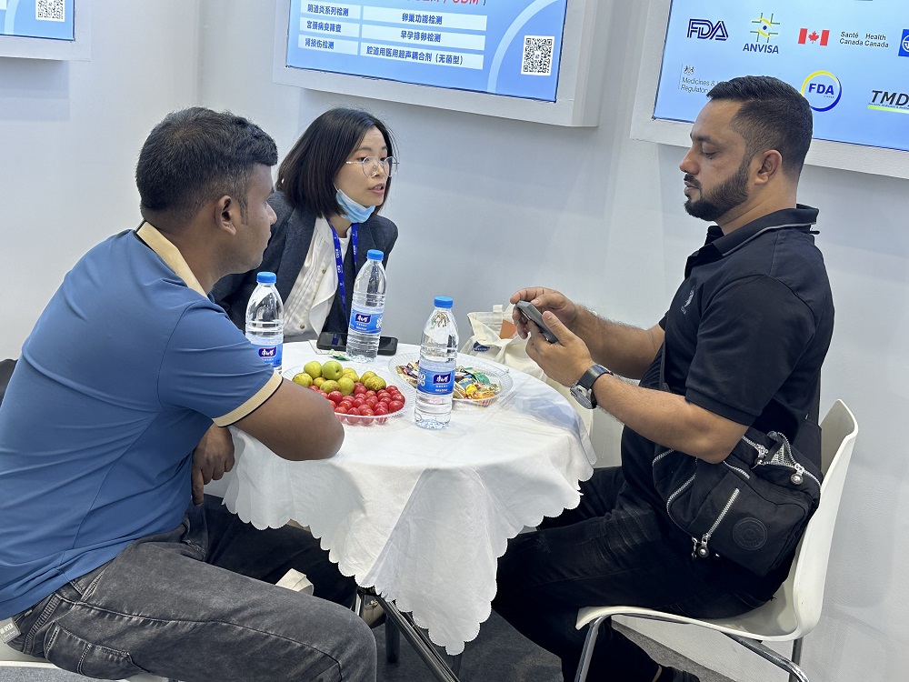 現場的工作人員熱情地為每一位來訪者介紹產品的特點和優勢。專業的講解、詳細的演示,讓參觀者對深藍醫療的產品有了更深入的了解。許多行業專家和合作伙伴紛紛駐足,與企業代表進行深入交流,探討合作機會。