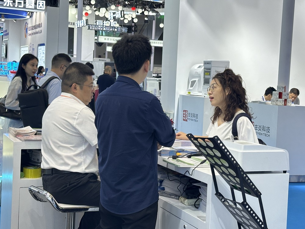 展會首日,深藍醫療的展位格外引人注目。簡潔大氣的設計風格,彰顯著企業的專業與實力。展位上,一系列走在科研前端的體外診斷試劑整齊陳列,涵蓋了多維度、多領域的產品,為健康檢測提供了全方位的解決方案。
