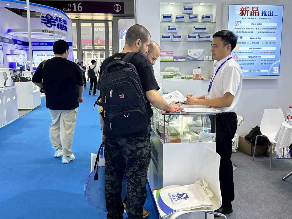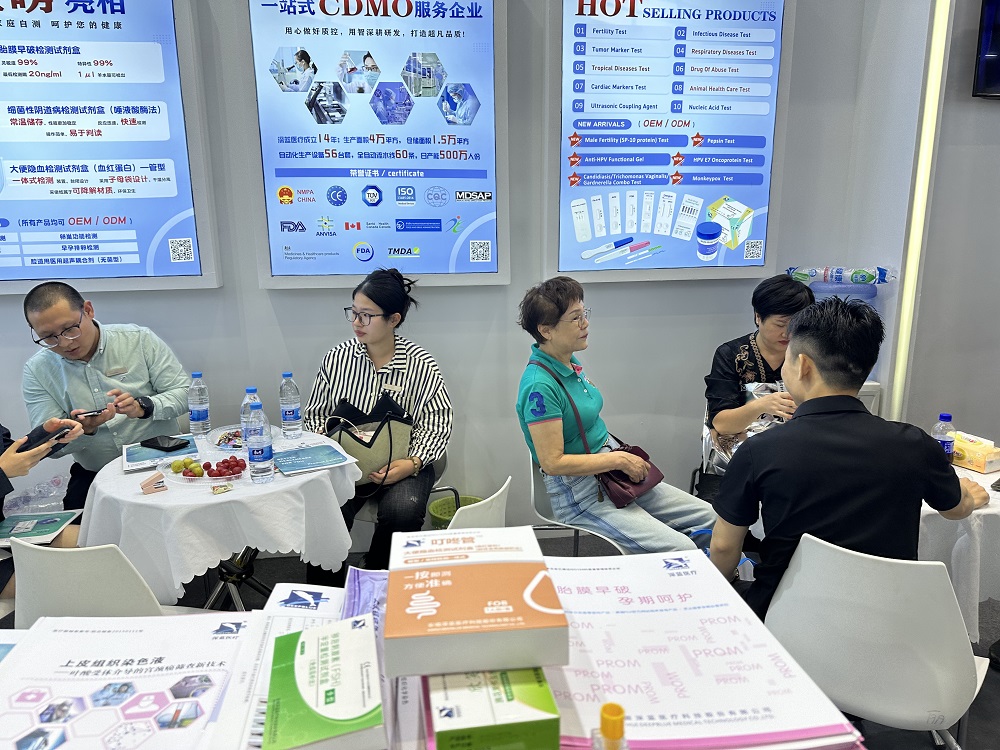 在體外診斷展區,深藍醫療攜胎膜早破檢測試劑盒、細菌性陰道病檢測試劑盒(唾液酸酶法)、管型大便隱血檢測試劑盒(血紅蛋白)等產品震撼亮相,憑借先進可靠的技術性能、多樣化的品類展示,成為業界關注的焦點。