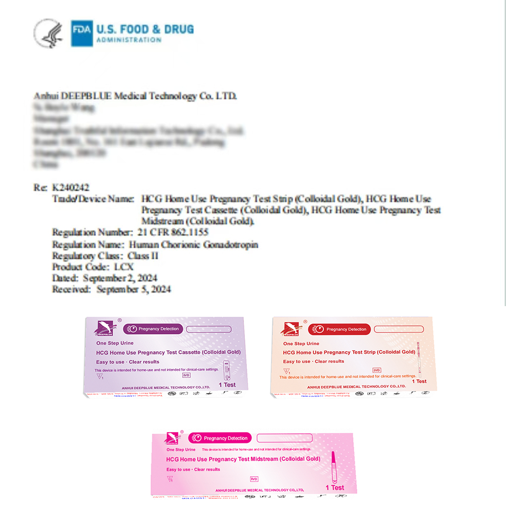 近日,深藍醫療的人絨毛膜促性腺激素(HCG)檢測試紙產品成功獲得美國食品藥品監督管理局(FDA)注冊證,標志著深藍在國際化道路上邁出了堅實的一步。