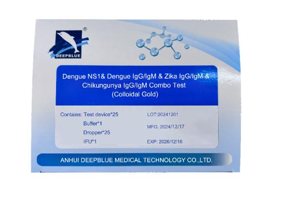 深藍醫療創新推出“登革NS1 & 登革IgG/IgM & 寨卡IgG/IgM & 基孔肯雅熱IgG/IgM 四聯檢測試劑盒”,實現一管血、一次檢測、15分鐘快速鑒別診斷,助力醫療機構精準防控,為患者爭取黃金治療時間!